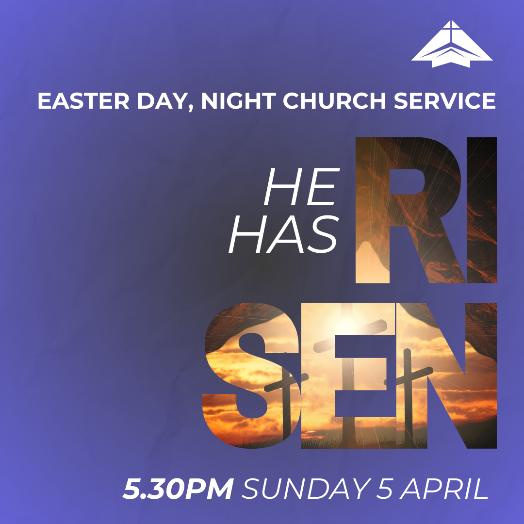 Easter Day 5:30pm Service Sunday 5 April 2026 5:30 pm 6:30 pm 2-4 Smith St Darwin, 0800 Darwin Australia (map) Google Calendar ICS